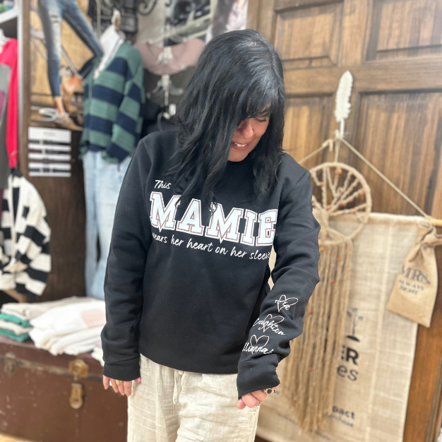 Create a custom sweatshirt designed to hold what matters most. Add the names of your children or grandchildren along the sleeve(s) for a meaningful, wearable keepsake — thoughtfully personalized and designed to be worn every day.